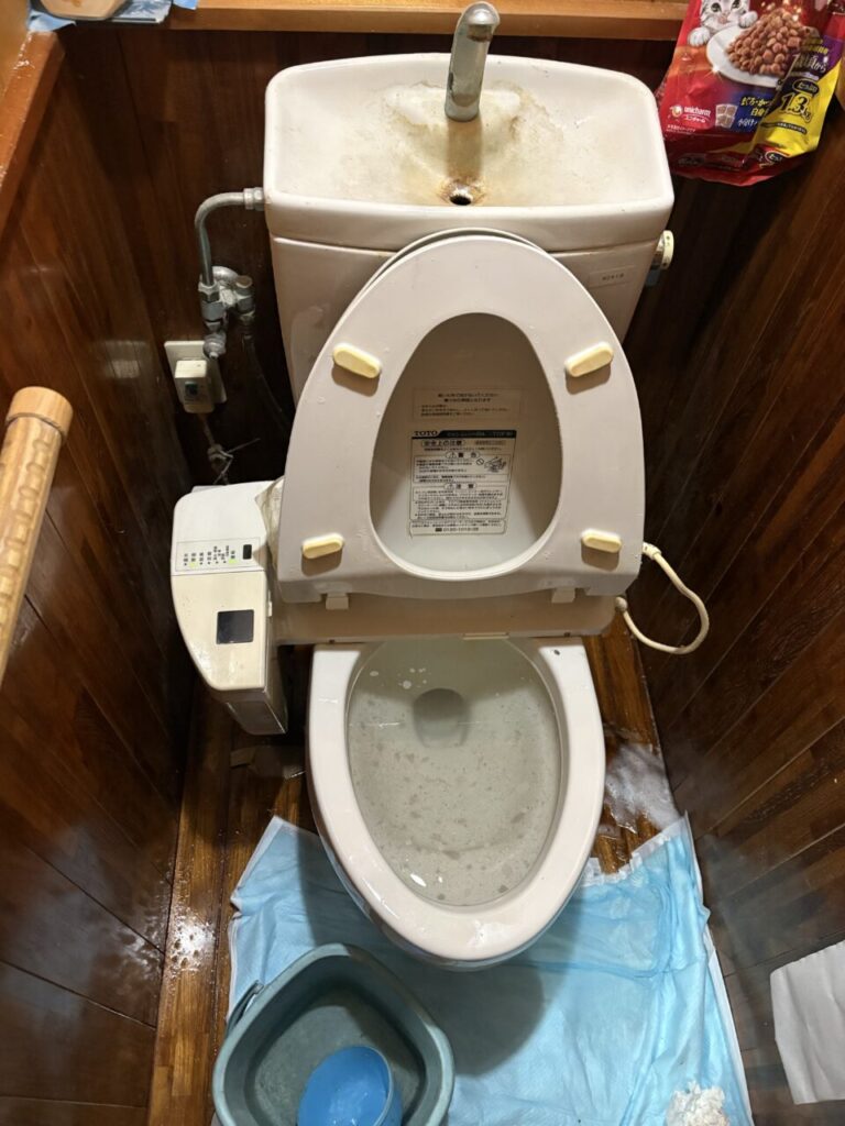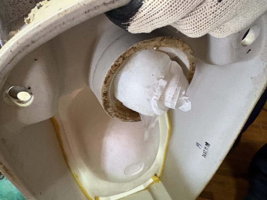 本日は市原市にてトイレつまりにお伺いしました。トイレを取り外してみると猫のトイレシートを流してしまったみたいで詰まっていたので除去しました。